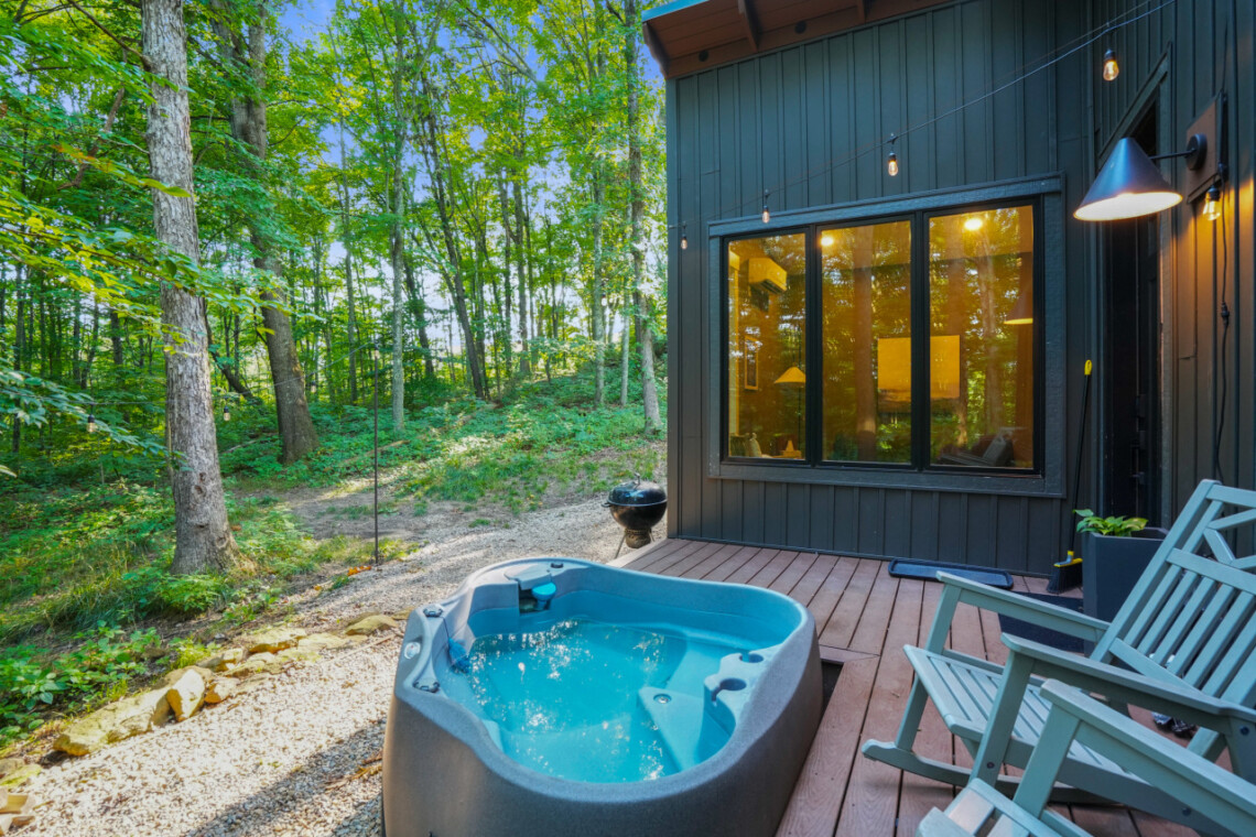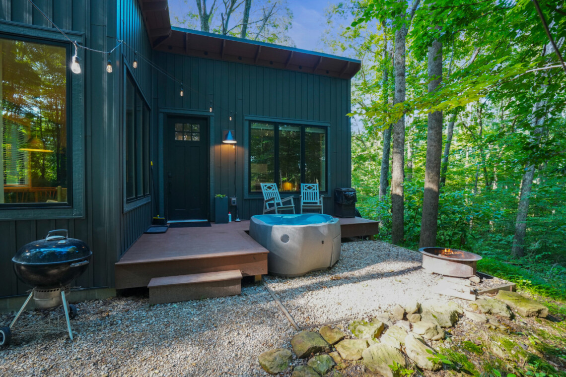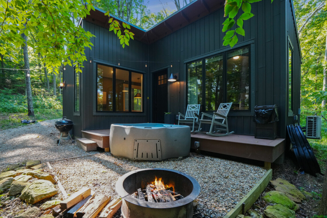 Experience beauty inside and out at Aspen Haus. This modern cabin is part of Wilder’s beautiful 40 acres and situated just 10 minutes from Hocking Hills State park. The property is nestled amongst the trees of our private woods, which is lined with hiking trails. It features a king bed, coffee/tea bar, and selection of board games. Come unwind, disconnect from distractions, and reconnect to what matters in the stillness and beauty of the wilderness. Must be 21+to rent. 4×4 recommended.