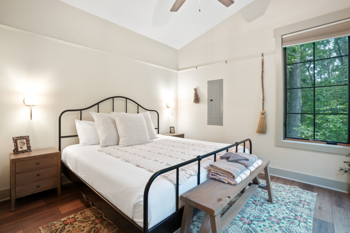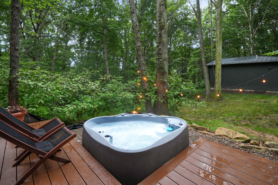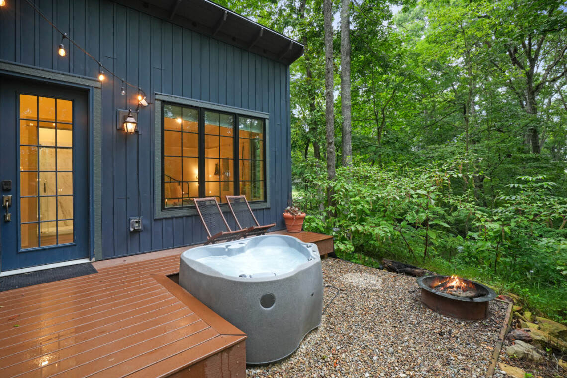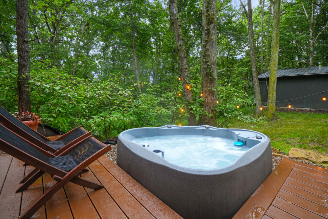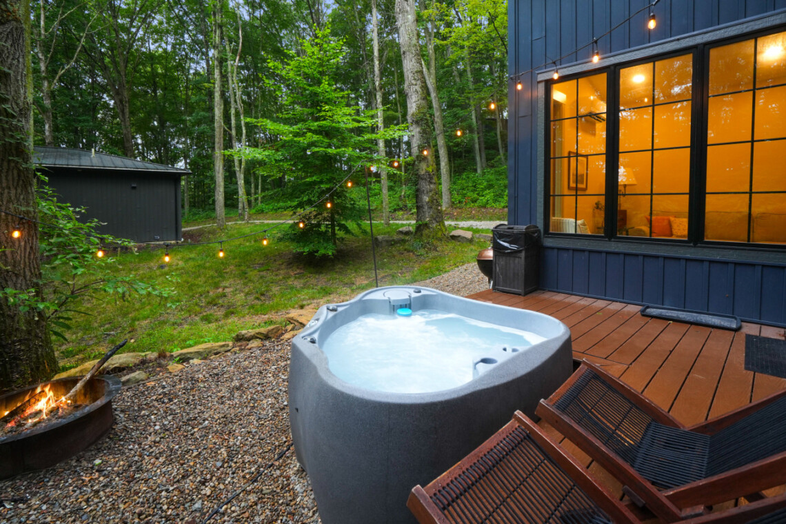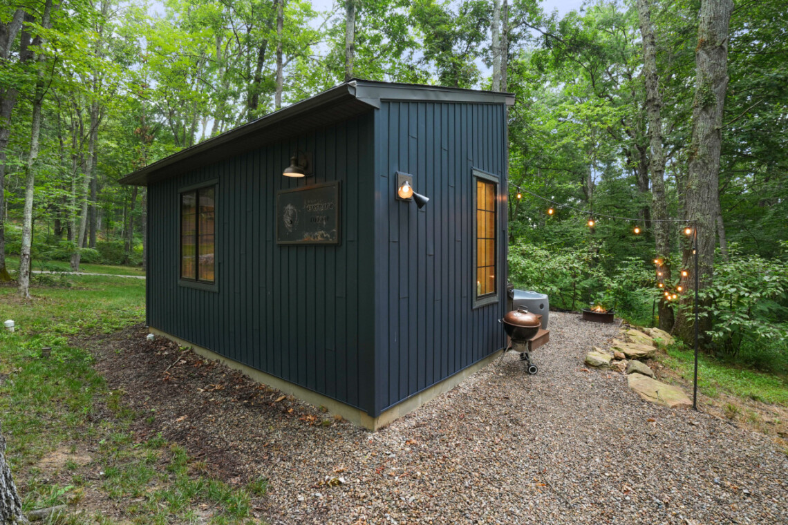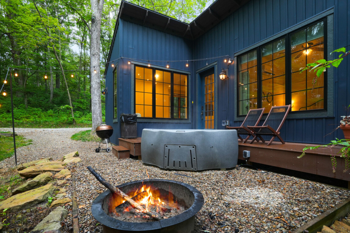 Experience beauty at Evermore Cottage. This modern cabin is part of Wilder’s beautiful 40 acres and situated just 10 minutes from Hocking Hills State park. The property is nestled amongst the trees of our private woods, which is lined with hiking trails. It features a hot tub, king bed, coffee/tea bar, and selection of board games. Come unwind, disconnect from distractions, and reconnect to what matters in the stillness and beauty of the wilderness. Must be 21+ to rent. 4×4 recommended