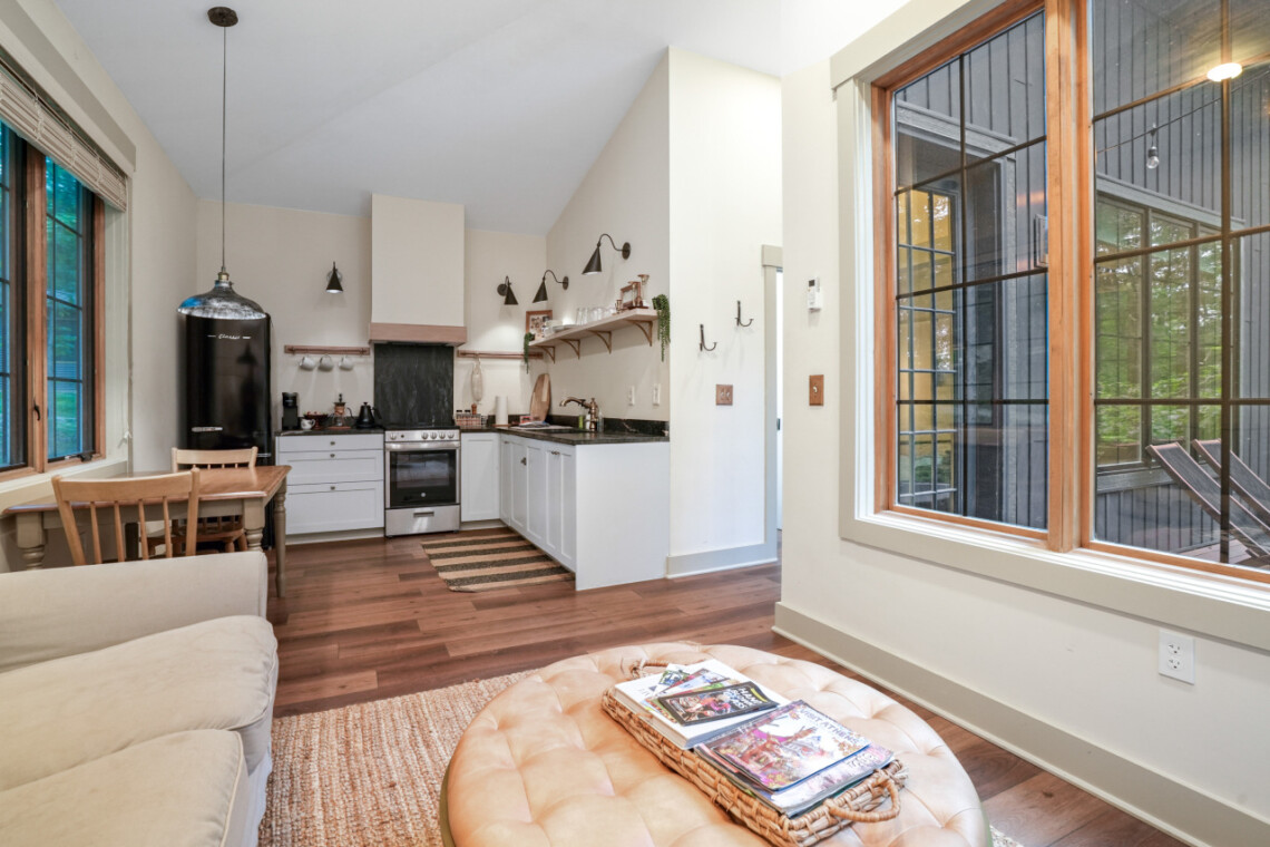 Experience beauty inside and out at Evermore Cottage. This modern cabin is part of Wilder’s beautiful 40 acres and is situated privately among the 10 total cabins on the Wilder Property. You will be nestled amongst the trees of our private woods, which is lined with hiking trails. It features a hot tub, king bed, coffee/tea bar, and selection of board games. Come unwind, disconnect from distractions, and reconnect to what matters in the stillness and beauty of the wilderness. No WiFi. Must be 21 years or older to rent. Open Parking lot for all 10 cabins on site. Please note that parking is not available directly in front of your cabin. Wagon is provided to assist with luggage. 4WD/AWD is recommended in all seasons. No WiFi available.